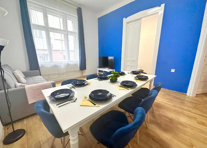 Das Elegant Apartman For 8 Person With Free Parking For 2 Cars Budapest liegt im Bezirk 08. Józsefváros nur 400 Meter vom Holokauszt Emlékközpont.